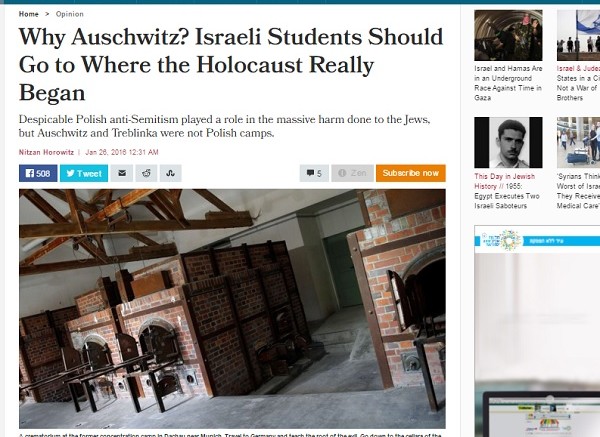 Pomimo roli, jaką polski antysemityzm odegrał w masowej krzywdzie wyrządzonej Żydom, Auschwitz i Treblinka nie były polskimi obozami – podkreśla Nitzan Horowitz z dziennika Haaretz.