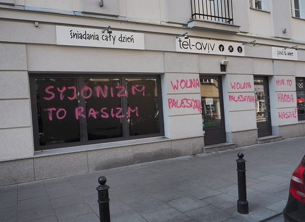 Tel Aviv to restauracja przy ul. Poznańskiej w Warszawie. Dziś – nie po raz pierwszy – okazało się, że nieznani sprawcy umieścili na niej antyizraelskiej graffiti. Lokal niedawno był odnawiany.
