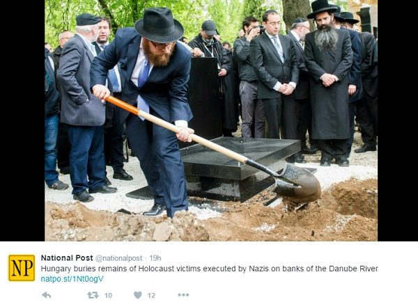 Setki fragmentów kości znaleziono w 2011 podczas renowacji mostu Małgorzaty w Budapeszcie. Należały one do Żydów zastrzelonych pod koniec wojny nad Dunajem. Węgierskie władze zdecydowały wówczas o ekshumacji. W piątek pochowano szczątki na cmentarzu żydowskim.