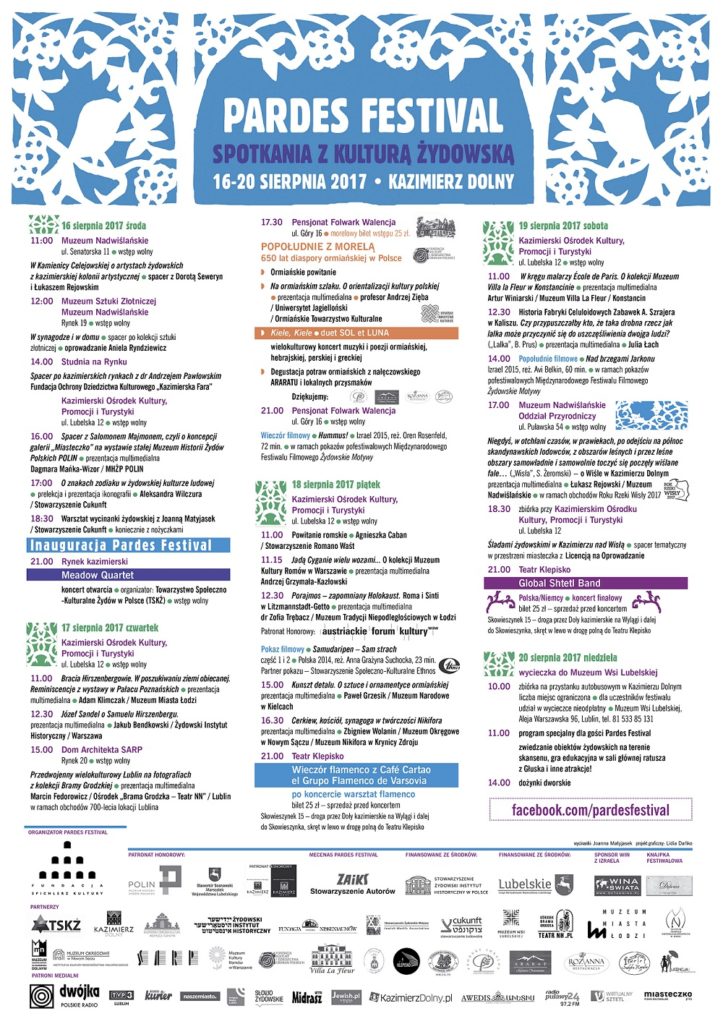 Zapraszamy do Kazimierza Dolnego na Pardes Festival – Spotkania z Kulturą Żydowską od 16 do 20 sierpnia.