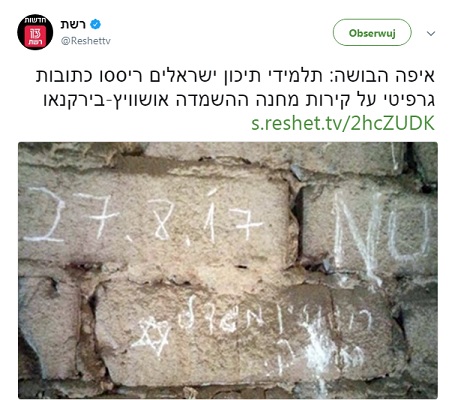 Nazwa szkoły średniej w Izraelu pojawiła się na murze jednego z budynków na terenie byłego obozu Auschwitz. Umieszczono tam również datę pokrywającą się z wizytą w muzeum młodzieży z miejscowości Migdal Ha’emek.