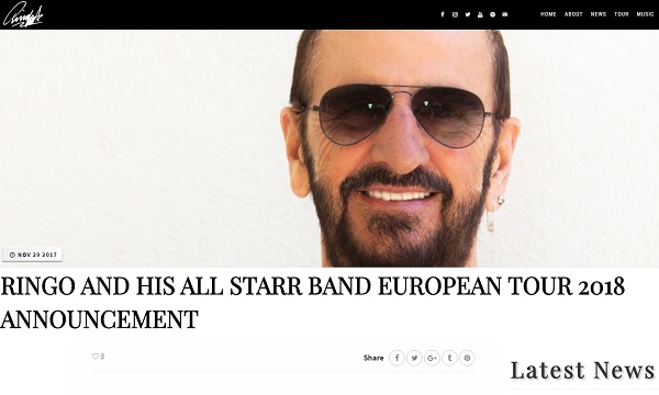 Artysta i jego grupa All Starr Band w 2018 r. odbędą trasę koncertową po Europie i w związku z nią pojawią się też w Izraelu. W Tel Awiwie wystąpią 23 i 24 czerwca. Wcześniej zagrają we Francji, Niemczech, Czechach.