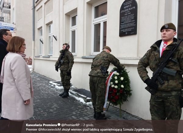 Premier Mateusz Morawiecki przebywa z wizytą w Chełmie, gdzie spotkał się z mieszkańcami oraz złożył wieniec pod tablicą upamietniającą Szmula Zygielbojma.
