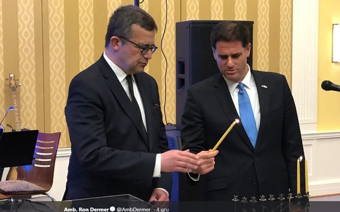 W poniedziałek w Waszyngtonie odbyło się spotkanie chanukowe, będące wspólnym uczczeniem stulecia niepodległości Polski i 70-lecia istnienia państwa Izrael. W trakcie uroczystości ambasador Izraela w USA, Ron Dermer, powiedział, że kontrowersyjna wspólna deklaracja polsko-izraelska, podpisana latem, pozwala obu narodom “szanować przeszłość”.