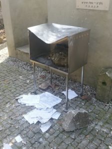 Nieznany sprawca uszkodził zasobnik na kwitlech przy ohelu cadyka Pinchasa Justmana i tablicę informacyjną, rozbił przynajmniej jedną macewę. Dewastację ujawnili członkowie chrześcijańskiej fundacji Adullam, którzy opiekują się grobem cadyka.