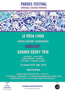 Żydzi sefardyjscy otworzyli własną tradycję muzyczną na świat i w taką wędrówkę muzyczną z Gerard Edery Trio wyruszymy w trakcie wieczornego koncertu w sobotę, 24 sierpnia. Organizatorzy zapraszają do Teatru Klepisko na spotkanie z bogactwem języka ladino, wielością technik głosowych i różnorodnością brzmień utrwalonych w muzyce sefardyjskiej.