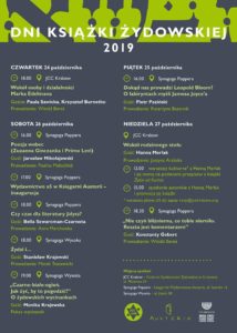 JCC Kraków, Wydawnictwo Austeria i Gmina Wyznaniowa Żydowska w Krakowie zapraszają na Dni Książki Żydowskiej, które odbywać się będą od 24 do 27 października. W programie przewidziano spotkania m.in. z Paulą Sawicką, Jarosławem Mikołajewskim, Bellą Szwarcman-Czarnotą, Piotrem Pazińskim.