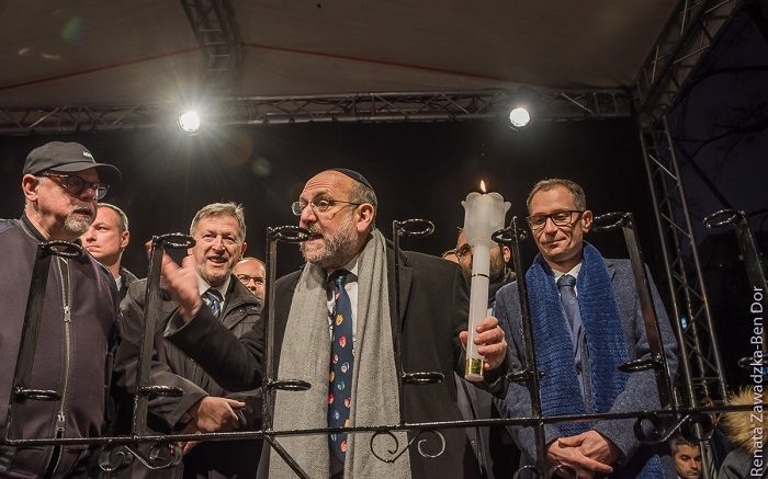 Pierwszą lampkę zapalili wspólnie rabin Michael Schudrich, ambasador Izraela Alexander Ben Zvi oraz przewodniczący GWŻ Lesław Piszewski.
