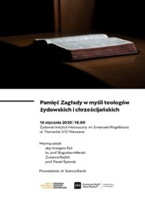 Spotkanie „Pamięć Zagłady w myśli teologów żydowskich i chrześcijańskich” odbędzie się w czwartek 16 stycznia o godz. 18 w Żydowskim Instytucie Historycznym (ul. Tłomackie 3/5, Warszawa).