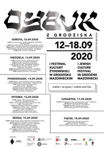 Organizatorzy chcą przypomnieć, że Grodzisk Mazowiecki przed wojną zamieszkiwali również Żydzi i było tam wiele żydowskich budynków – dziś nieistniejących. “Poznamy ich historię i tradycje, posłuchamy żydowskich utworów lub nawiązujących do muzyki klezmerskiej” – zapewniają organizatorzy. W części koncertowej wystąpią Remek Hanaj i Paweł Nowicki (Nagrania terenowe snów) oraz Shofar. Trio wystąpi z nowym materiałem, który ukaże się na płycie pod koniec tego roku. To w sobotę, a w niedzielę Paweł Szamburski w repertuarze Moshe Beregowskiego, kwartet MELECH grający kompozycje Mordechaja Gebirtiga i reprezentant Łodzi, zespół Jidyszkajt. Na zamknięcie festiwalu, 18 września, w restauracji The Park wystąpi DJ Fagot, czyli Grzegorz Fajngold, łódzki artysta, członek takich zespołów jak 19 wiosen, Już nie żyjesz, Demolka.