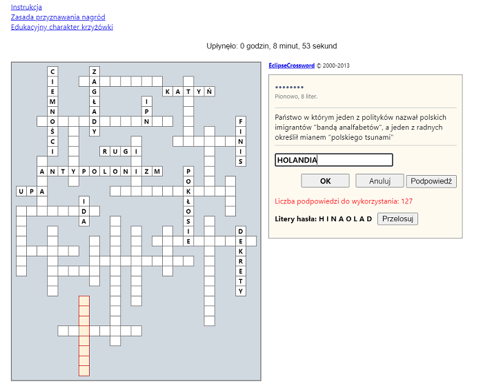 Instytut do Walki z Antypolonizmem zapowiedział swoje powstanie w sierpniu tego roku. Zbyt wiele póki co nie osiągnął, mimo finansowania z Funduszu Sprawiedliwości, ale za to zamieścił na swojej stronie krzyżówkę o antypolonizmie właśnie, gdzie hasłem głównym jest – mam nadzieję, że nie zdradzam wielkiego sekretu – “Jan Tomasz Gross”.