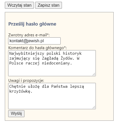 Po rozwiązaniu wszystkich haseł można krzyżówkę przesłać do redakcji Instytutu. Należy wówczas wpisać komentarz do hasła głównego, które – przypominam – brzmi “Jan Tomasz Gross”. Ja wpisałam taki: “Najwybitniejszy polski historyk zajmujący się Zagładą Żydów. W Polsce raczej niedoceniany”. A teraz czekam na nagrodę.