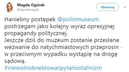 Ogórek pozywa dyrektora Muzeum Polin i publikuje list poparcia od “asystenta rabina”