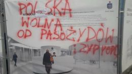 W sobotę w pobliżu warszawskiej Rotundy pojawiło się antysemickie graffiti na jednym z banerów. Pracownicy banku, do którego należał baner, zawiadomili policję. “Polska wolna od…