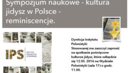 Dyrekcja Instytutu Polonistyki Stosowanej ma zaszczyt zaprosić na spotkanie poświęcone kulturze jidysz, które odbędzie się 12.05. 2016 na Wydziale Polonistyki (sala 17) o godz. 11.00….